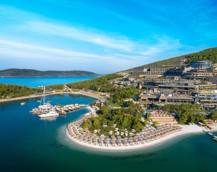 Хотелът е разположен на площ от 110.000 м² и се намира на 15 км. от летище Милас, на 20 км. от центъра на Бодрум, в района на Гюверджинлик. Разположен на брега на морето, отворен през 2018 г.