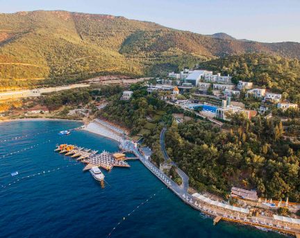 Хотелът се намира на 23 км от летище Милас, на 10 км от центъра на Бодрум, на брега на морето. Разполага с обща площ от 87 000 m², последно изцяло реновиран през 2018/2019 г.