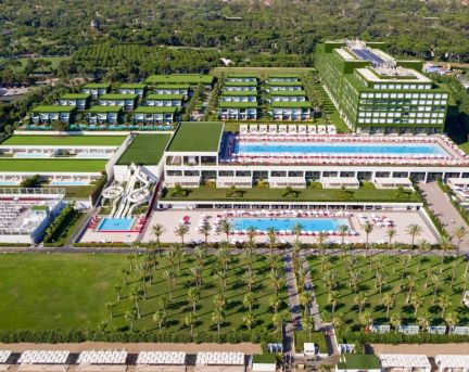 Основен ресторант, 7 а-ла-карт ресторанта (рибен, турски, италиански, афродизиак ресторант, ресторант ‘’на сляпо’’ суши, барбекю – с предварителна резервация и срещу заплащане), снек ресторант, бистро, сладкарница, 6 бара, 5 открити басейна (2 от които на вилите) и 1 закрит басейн, водни пързалки, кино, амфитеатър, СПА център, дискотека, магазини, 3 конферентни зали, 3 бални зали, 9 заседални зали, паркинг.