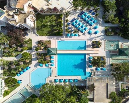 Хотелът разполага с основен ресторант, 1 а-ла-карт ресторант (може да се ползва безплатно веднъж за 7 дневен престой с предварителна резервация), 6 барa, дискотека (напитките са платени), 2 открити басейна, закрит басейн, водни пързалки, СПА център, магазини, анимация, музика на живо, 6 конферентни зали, паркинг. Базата на изхранване е All inclisive - закуска, обяд и вечеря на шведска маса, междинни хранения; местни алкохолни и безалкохолни напитки. Комплексът притежава собствен пяъсен плаж. Чадъри, шезлонги и плажни кърпи на плажа и при басейна се ползват безплатно от гостите. За най-малките посетители са налични детски басейн, с 8 водни пързалки, мини клуб (4 -12 г.), мини дискотека. Безплатен Wi-Fi има на лоби бара и на рецепция.