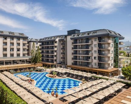 Разположен на 110 км от летище Анталия, на 12 км от центъра на Алания и на 800 м от Конаклъ, на 150 м от брега на морето. Реновиран през 2024 г.