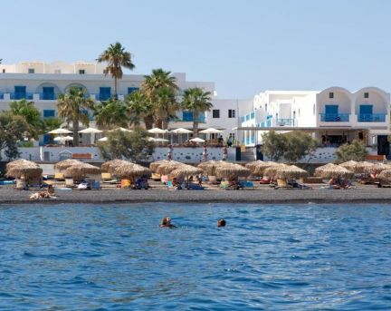 Разположен точно на черния вулканичен плаж на село Камари, хотел Kamari Beach се откроява не само с отличното си местоположение, но и с 50-годишната си традиция в предоставянето на отлично гостоприемство.Проектиран през 70-те години и непрекъснато реновиран, Kamari Beach Hotel е емблематичен пример за егейска класическа архитектура.