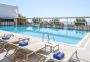 Насладете се на най-големия плувен басейн в Камари. Независимо дали сте в настроение за плуване или просто искате да се отпуснете под лятното слънце, това е мястото, където трябва да бъдете. Поръчайте любимия си сок или коктейл от нашия бар край басейна и му се насладете под полъха на палмовите дървета. Басейнът разполага със спасител.