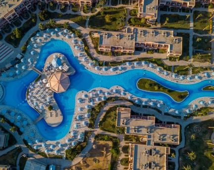 Намира се на 8 км. от летище Хургада, на 15 км. от центъра на Хургада, на брега на морето. Посторен през 2000 година. Реновирам през 2016 година.