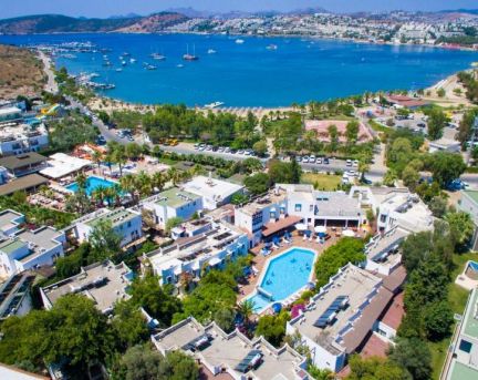 Хотелът е разположен на 40 км от летище Милас, на 1 км от центъра на Бодрум, в местността Гюмбет. На 100 м от плажа. Последна частична реновация през 2023 година.