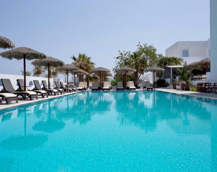 Хотелът се намира на о-в Санторини на 50 м. от плажа на Камари, на 10 км. от Фира и на 4 км. от международното летище в Санторини.