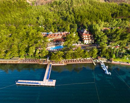 Намира се на 102 км от летище Даламан, на 8 км от центъра на Мармарис, на 2 км от района на Ичмелер, на брега на морето. Построен 1988 г., на обща площ от 38 000 M². Частично реновиран 2025 г.