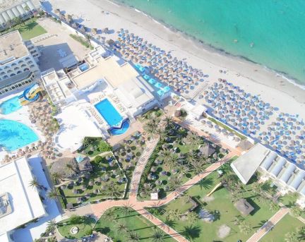 Махдия, директно на дълъг и широк пясъчен плаж с фин бял пясък. Хотелът е разположен на около 2 км от центъра на Махдия и около 50 км от летище Monastir. В близост има магазини, кафенета и местни ресторанти.