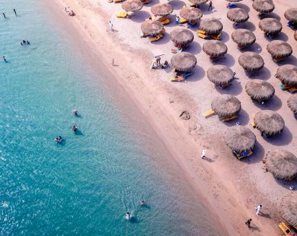 Собствен, пясъчен. Чадъри, шезлонги и матраци на плажа и при басейна - безплатно. Плажни кърпи – безплатно.