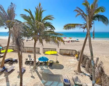 Собствен пясъчен плаж. Чадъри и шезлонги на плажа - безплатно.
