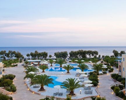 Едно от най-популярните ни места за настаняване в Периволос.Този крайбрежен хотелски комплекс е разположен на известния космополитен плаж на Периволос, на югозападната страна на Санторини. Той разполага с най-голямата зона с басейни от всички хотели в Периволос - Периса и неговата частна зона на плажа с черен пясък в Периволос с шезлонги и чадъри, които са безплатни за гостите на хотела. Хотелът е разположен в близост до туристическото селище Периса със своите магазини и таверни, както и дълъг плаж със скалата Меса Вуна, която се подава от водата.