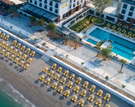 Плаж: хотелът се намира на 1 минута пеша от пясъчен плаж Calis. Шезлонги, чадъри и хавлии - безплатно на плажа и при басейна.