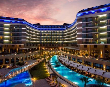 Основен ресторант, 6 а-ла-карт ресторанта (италиански, азиатски, рибен, турски, стек хаус – срещу заплащане; бистро с интернационална кухня - 1 безплатно посещение на 1 от ресторантите при минимум 7 нощувки, с предварителна резервация), 3 снек бара, сладкарница, 9 бара, 4 открити басейна (1 отопляем), 1 закрит отопляем басейн, аквапарк с 9 водни пързалки, СПА център, амфитеатър, открита дискотека, кино, магазини, 5 конферентни зали, паркинг.