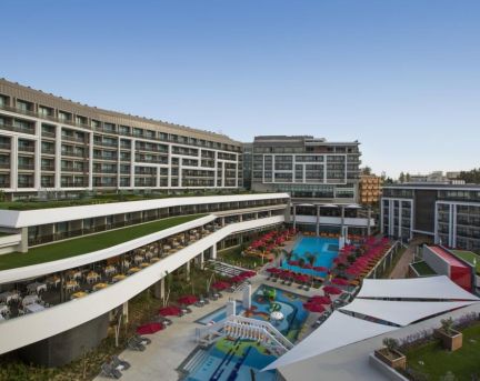 На територията: основен ресторант, 3 A'la Carte ресторанта, 4 бара, открит и закрит басейн, фитнес, сауна, турска баня, тенис на маса, билярд, волейбол, дартс, водни пързалки, амфитеатър, водни спортове, 3 конферентни зали, интернет – кафе, магазини, СПА център, наем на автомобили. За децата: 2 детски басейна (открит и закрит), 2 водни пързалки, мини клуб. Wif-интернет - срещу заплащане