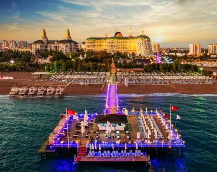 Основен ресторант, 8 а - ла - карт ресторанта (италиански, френски, гръцки, мексикански, далекоизточен, османски, рибен, ресторант месо и вино - с предварителна резервация, при минимум 7 нощувки - безплатно), 5 бара, 3 открити (оновен, релакс и с пързалки) и 1 закрит басейн, дискотека, аквапарк, лунапарк, СПА център, магазини, конферентна зала, Wi-Fi (безплатен).
