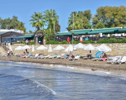 На 900 м. от плажа. Чадъри, шезлонги и матраци на плажа и на басейна – безплатно.