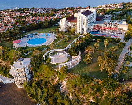 Основен ресторант, 5 бара, 2 открити басейна, закрит басейн, термален басейн,СПА център, фитнес център, магазини, паркин За децата: Детски басейн, 2 водни пързалки, детска площадка, мини клуб, анимация. Безплатни услуги:Сауна, турска баня, фитнес, тенис на маса, Wi-Fi(в лоби). Платени услуги: Масаж, фризьор, билярд, пералня, химическо чистене, лекар, детегледачка, моторни и безмоторни водни спортове Плаж: Собствен,малък пясъчно-чакълест и платформа. Чадъри, шезлонги и матраци на плажа и при басейните – безплатно, плажни кърпи - безплатно.