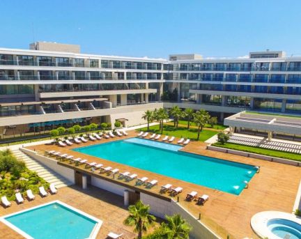 Основен ресторант, а-ла-карт ресторант, лоби бар, бар при басейна, снек бар на плажа, открит басейн, СПА център (2500 м2, термален басейн, таласо басейн, закрит басейн, джакузи, турска баня, парна баня, сауна, солна стая, леден фонтан), фитнес център, 2 тенис корта, 1 баскетболно игрище, игрище за мини футбол,конферентен център, паркинг. За децата: детски басейн.