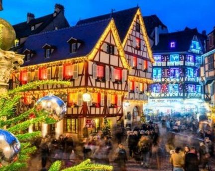 Еднодневна екскурзия "Колмар и пътят на виното". Отпътуване за Колмар - "малката Венеция на Франция". Разходка из тесните улички, осветени от празнични светлини, и цветните къщи с традиционна елзаска архитектура-Къщата с главите, къщата Пфистер, църквата Сен Мартен, каналите на р.Лаух са само част от пешеходната ни разходка в бижуто на Елзас - приказния Колмар.